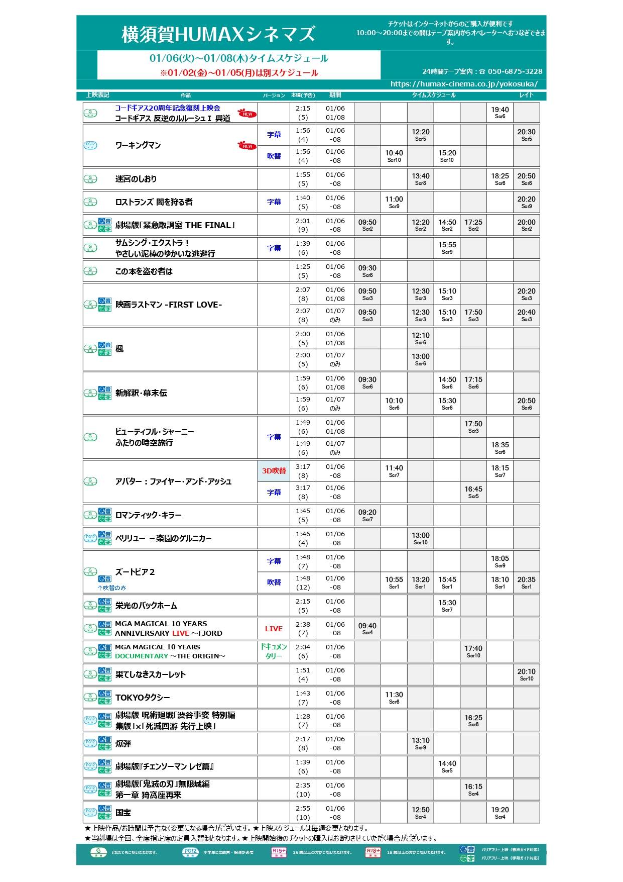 1/2~1/8上映スケジュール