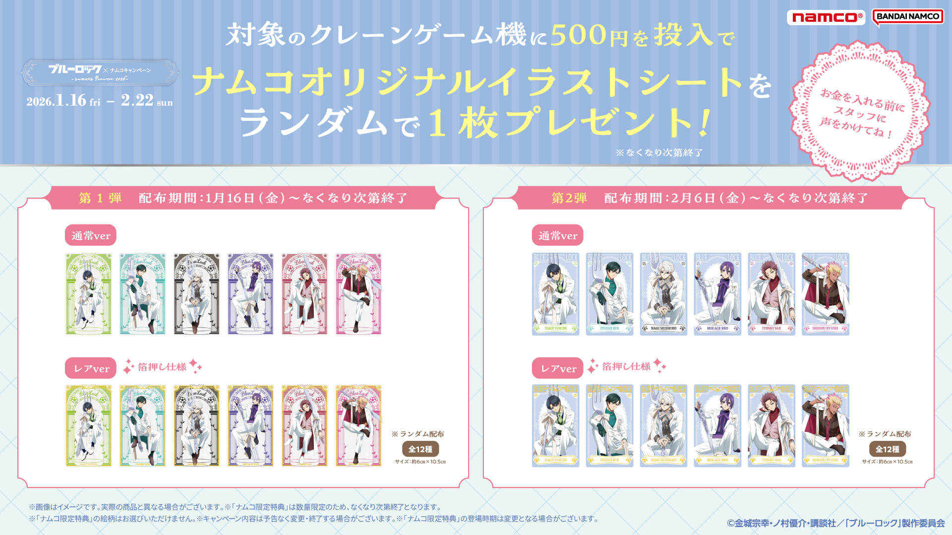 1月16日(金)より、「TVアニメ『ブルーロック』×ナムコキャンペーン -sweets flavor 2026-」を開催!