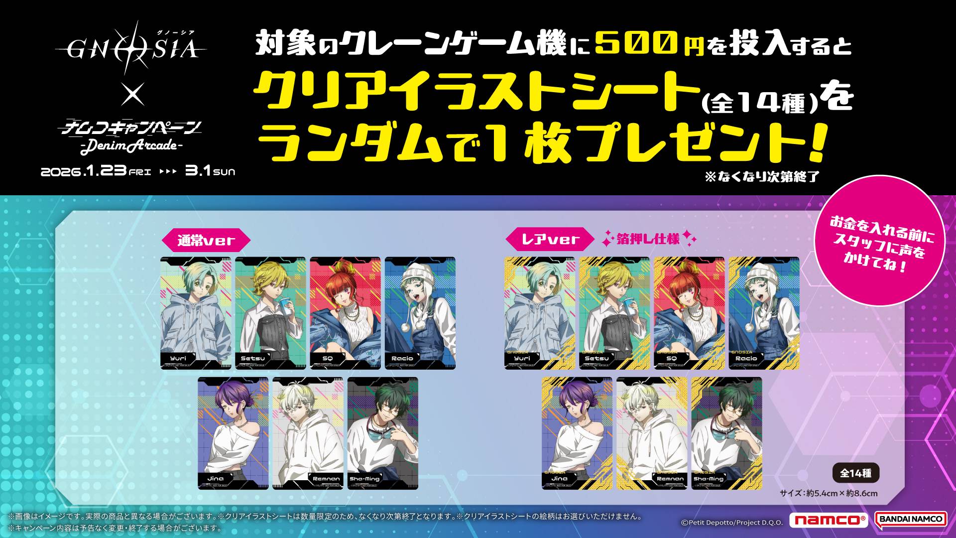 1月23日(金)より、TVアニメ『グノーシア』×ナムコキャンペーン-Denim Arcade-を開催!