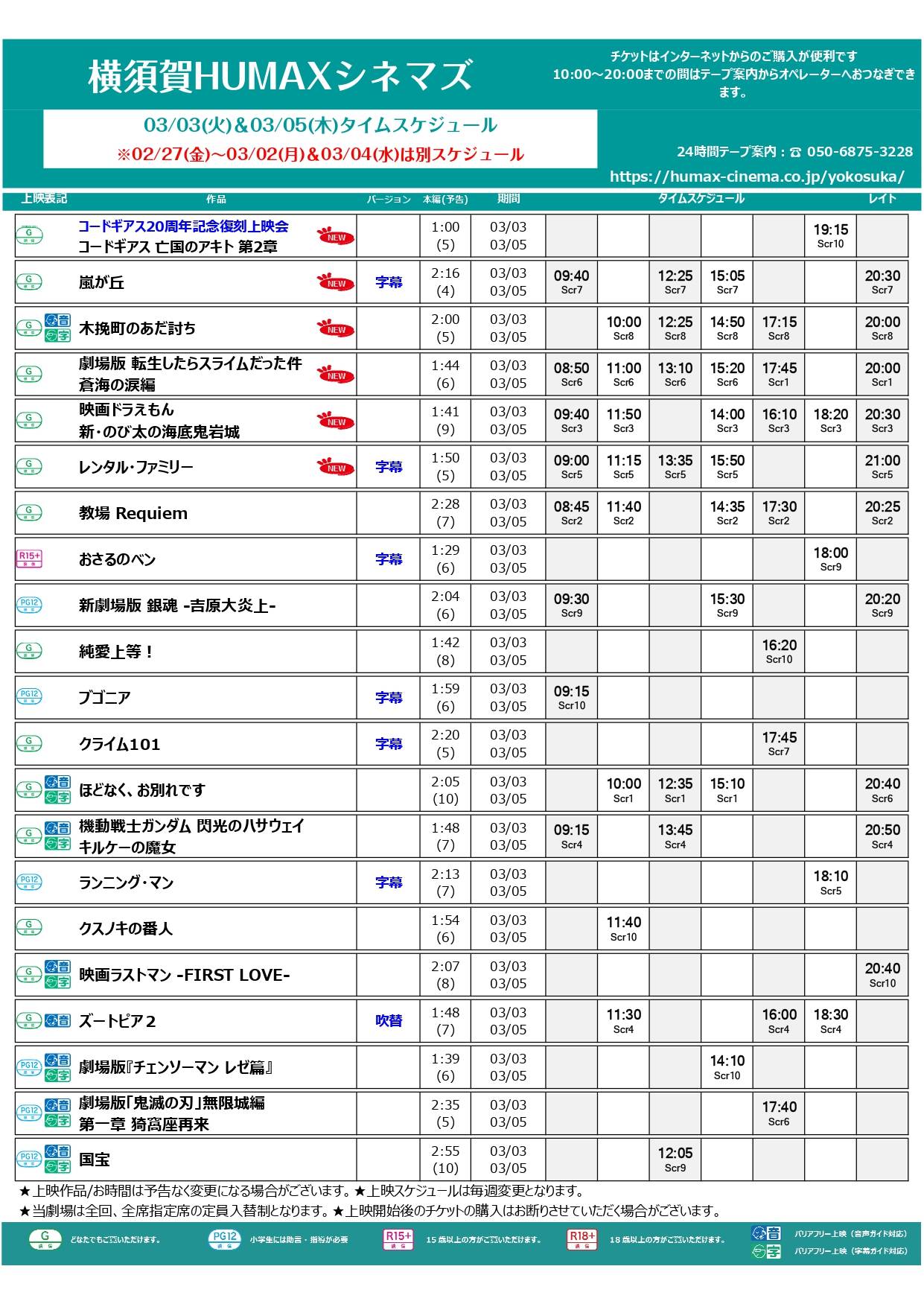 2/27~3/5 上映スケジュール