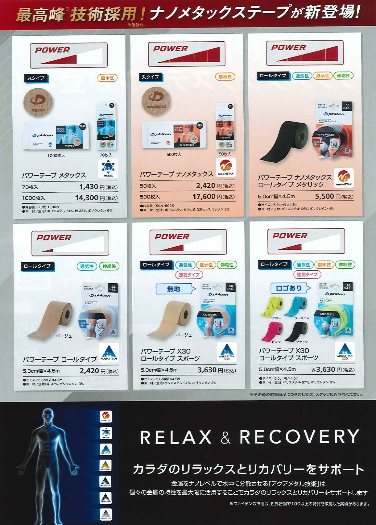 ファイテン最高峰技術ナノメタックスを採用したパワーテープが新登場!!
